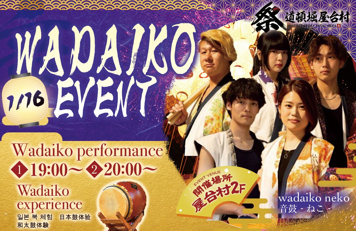 道頓堀 屋台村 祭では、和太鼓ユニット「音鼓‐ねこ‐」様をお迎えし、2部構成のステージを開催いたします!