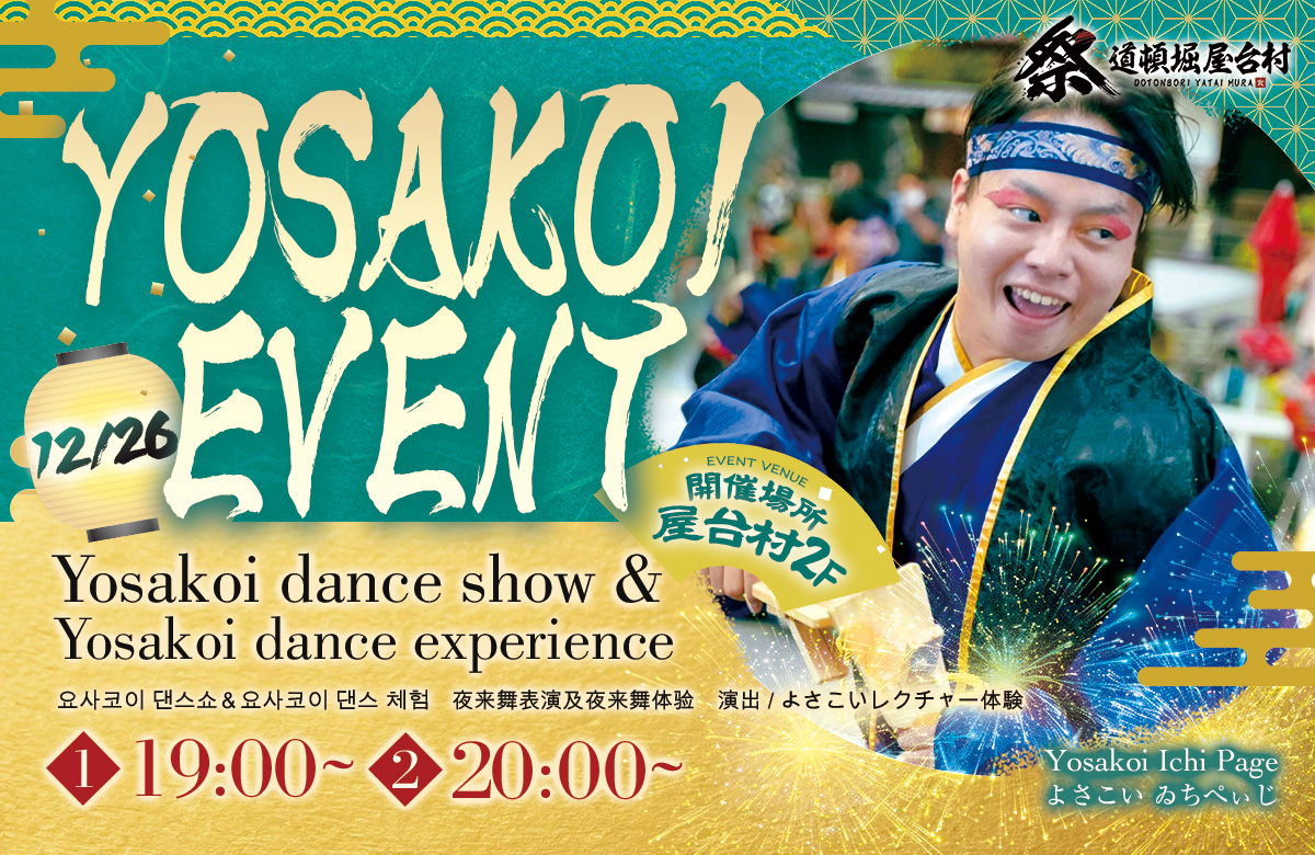 2025年12月26日(金)、道頓堀 屋台村 祭にて、「ゐちぺぃじ」様によるよさこいの特別パフォーマンスが開催されます!