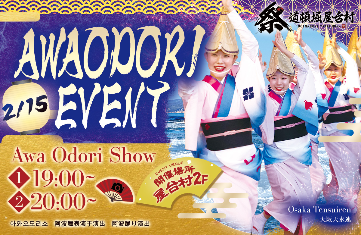 2025年2月15日(日)、道頓堀 屋台村 祭にて、関西を代表する本格阿波おどり団体「大阪天水連」様によるパフォーマンスと、参加型のレクチャー体験イベントを開催いたします!
